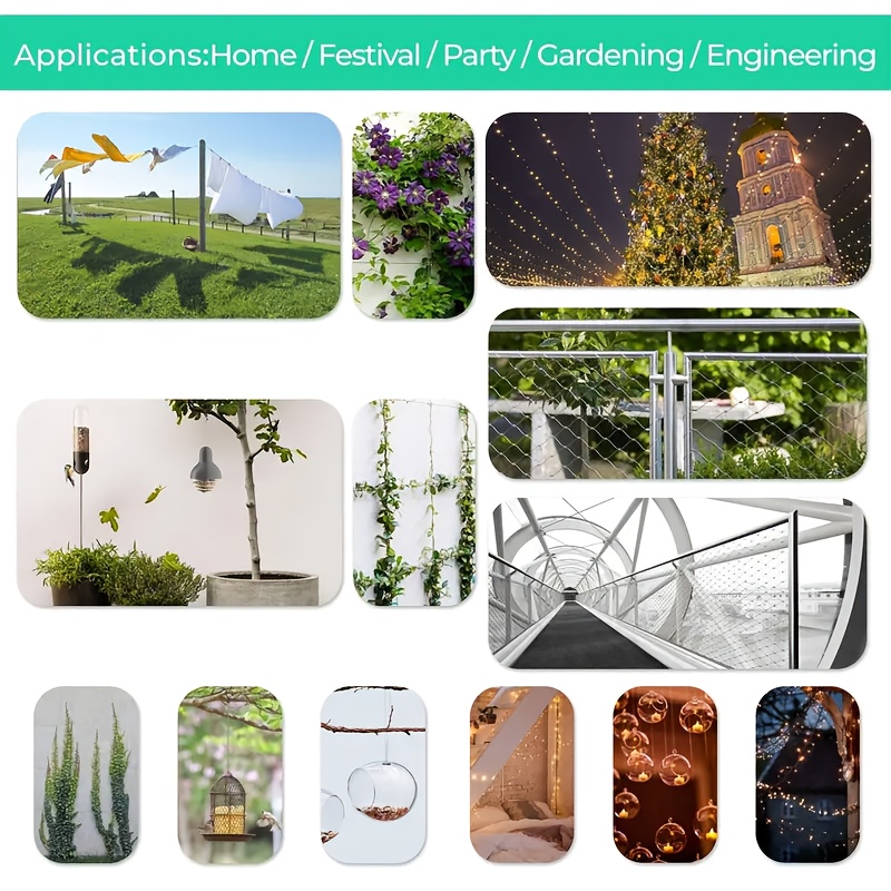 این محصول به همراه ۱۵۰ حلقه فشاری آلومینیومی، به آسانی به شما این امکان را میدهد که کابل را بهسرعت نصب و راهاندازی کنید. این ویژگی بهخصوص در پروژههای آویزان کردن لباسها یا ایجاد حصارهای باغ بسیار مفید است. همچنین، این کابل بهراحتی قابل برش به اندازههای دلخواه است و میتواند بهعنوان یک ابزار چندمنظوره در منزل یا باغ شما مورد استفاده قرار گیرد.